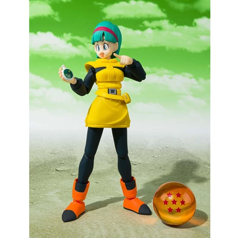 Dragon Ball Z Figurine Bulma Journey to Planet Namek version dans la gamme S.H Figuarts du fabricant Bandai Tamashii. Figurine articulée en PVC, taille: 14 cm avec de nombreux accessoires afin de varier les poses de votre figurine.