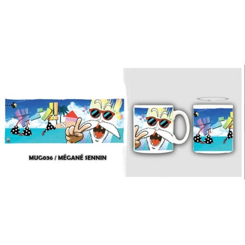 Mug Dragon Ball Méganné Sennin Tortue Géniale. Mug fun et ultra coloré de Kamé Sennin (Tortue Géniale) le maitre de goku dans le manga culte Dragon Ball, Buvez votre boisson favorite en compagnie de Tortue Génial grace à ce mug Mégané Sennin.