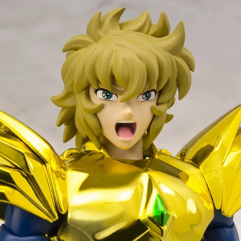 Myth Cloth d’Aiolia dans son armure d’Odin. Cette nouvelle figurine Saint Seiya de 16 cm en PVC et métal comprend le “golden ring Draupnir”, 2 visages différents, 8 mains interchangeables permettant de présenter Aiolia avec ou sans son épée. Les mains peuvent aussi être utilisées pour la Myth Cloth EX Leo Aiolia.