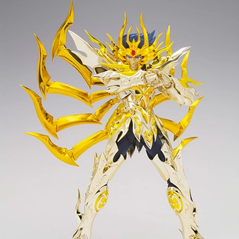 Saint Seiya Soul of Gold Death Mask du Cancer God Gold Cloth EX produite par Bandai. Voici la quatrième Myth Cloth EX articulée de Saint Seiya Soul of Gold. Du haut de ses 18 cm cette reproduction en métal et PVC représente le chevalier du Cancer dans sa magnifique armure God Gold Cloth EX tirée de la nouvelle série animée Saint Seiya soul of Gold !